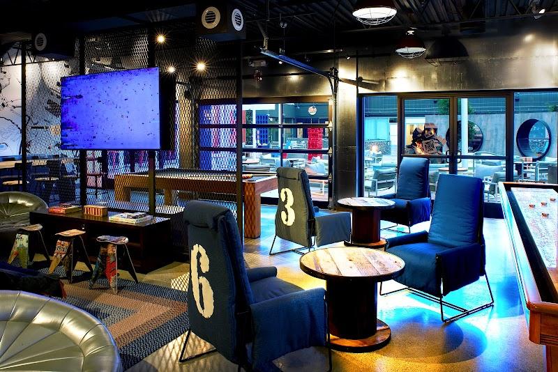 - The Yard Outdoor Area: An inviting 8,000 sq. ft. courtyard featuring four cozy firepits, oversized games like Connect 4 and ping pong, Instagram-worthy sculptures, and comfortable seating – perfect for couples to sip wine and gaze at the stars.